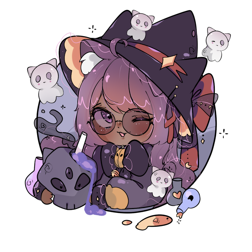 However, Xavi didn’t give up.He had nothing but time to find a way. If he couldn’t have a child with his beloved he vowed to create one through magic. He spent days- months - and years…but with no luck, he decided there was only one option. He must sacrifice his sacred power- the temporal blade. With a great surge of magic, he thought he found success but he only found a swirling brew of pure energy that could barely be contained in his onyx cauldron.After all his effort - countless years of practicing his magic and draining all the power from his great weapon only left him with sadness. Until he thought about a very dangerous plan, his final hope was to steal his beloved Eva’s powerful staff that could cross realms.As a last effort, he went behind his love with the hope that Eva would understand after his work could be realized and he could bring home what he thought they both truly desired.Eva, however- was not one to be discouraged by this void her love sought to fill. While she was left unaware of Xavi’s work she wandered to the woods and found another wayward soul to nurture.A lone orphaned Kitten of the fae wild… Eva found a glimmer in the eyes of the young creature that she wished to share with Xavi. Maybe just maybe this spark would ease the pain that raptured her companion’s heart.Maybe just maybe this spark would ease the pain that raptured her companion’s heart. She burst into his studies to surprise him with this gift as he was hard at work with his craft, but froze in horror of the display in front of her.Xavi was attempting to merge the power of reality with the caustic brew unknowingly tearing a rift in reality itself - she dropped the kitten and rushed to Xavi before he was ripped apart by the flux of energy.